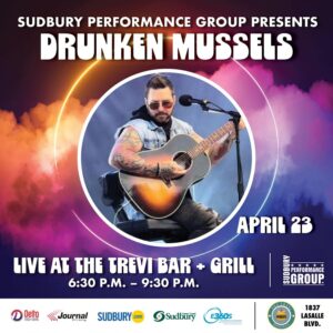 Home Events - Sudbury Performance Group Music Music Mel Location Trevi Bar & Grill 1837 Lasalle Blvd. Sudbury, ON P3A 2A3 Category Music Date Apr 16 2026 Time 6:30 pm - 9:30 pm Music Mel Share this event + Add to Google Calendar + iCal / Outlook export